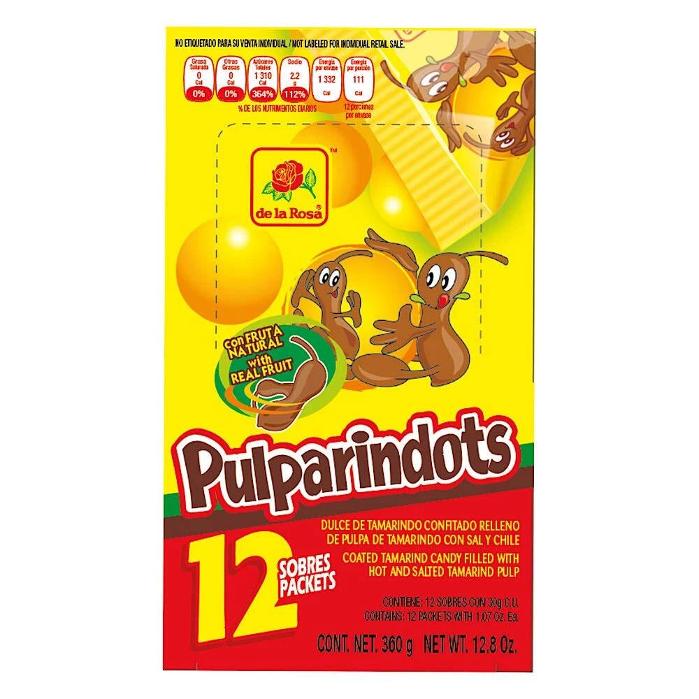 De La Rosa Pulparindots Tamarind Candy – Mexican Spicy Tamarind Candy, 12 Packets
