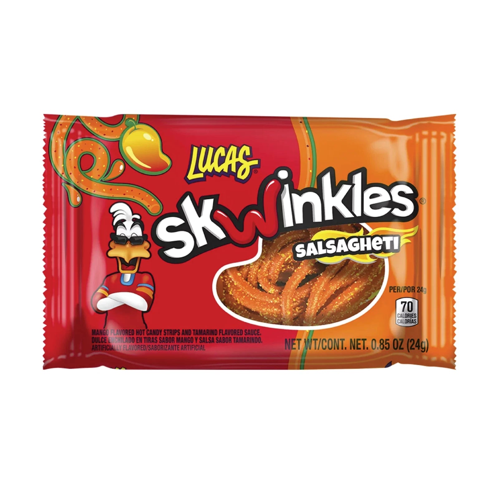 Lucas Skwinkles Salsaghetti Mango Flavor Candy Strips with Tamarind Sauce – 12 Pack -Mexican Spicy Candy