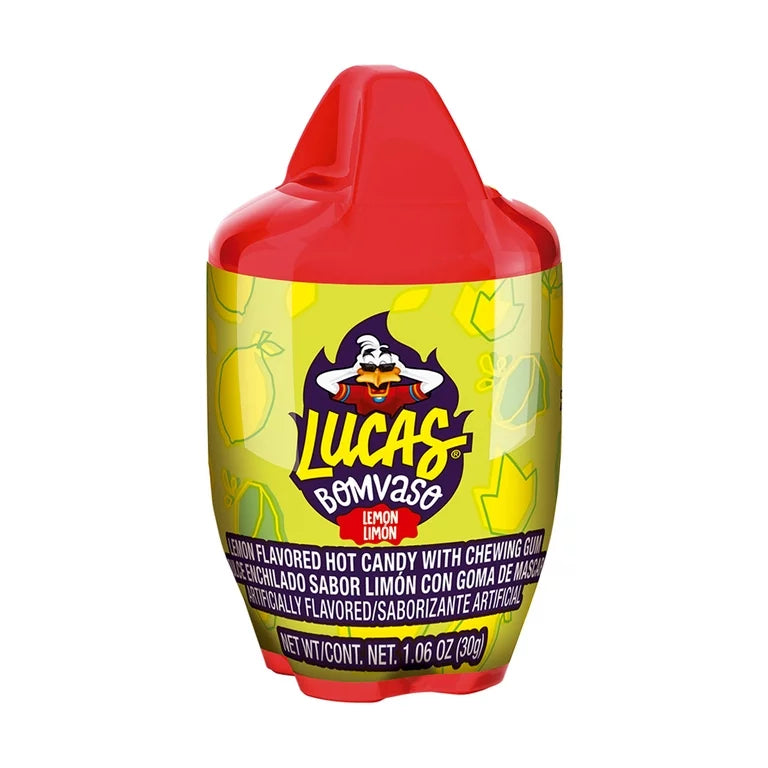 Lucas Bomvaso Lemon-Flavored Hot Candy with Chewing Gum - 10 Bottles