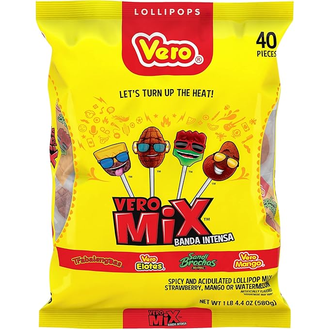Vero Banda Fuego Intensa Lollipops (Variety of 4 Epic Flavors)- 40 Count - Authentic Mexican Lollipops
